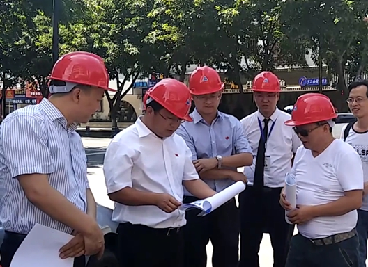 烈日炎炎下,馬市長等人不顧酷暑,在施工現(xiàn)場聽取了廖藝徽董事長對“創(chuàng)客空間”內(nèi)部設(shè)施、外部裝潢等施工進程的匯報。